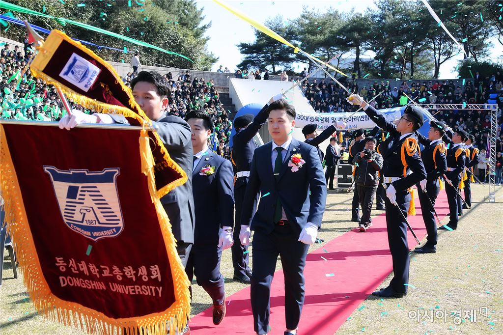 [아시아경제 노해섭 기자]동신대학교 제30대 총학생회(총학생회장 김혜승) 및 단과대학 학생회 출범식이 14일 동신대학교 노천극장에서 개최됐다. 재학생 3천여 명이 참석한 가운데 열린 이날 출범식에서 동신대학교 총학생회는 Jump Together123 캠페인, 봉사활동, 국토순례, 선거 참여 등을 통해 건전한 청년문화를 만들어 가겠다고 다짐했다.노해섭 기자 nogary@<ⓒ세계를 보는 창 경제를 보는 눈, 아시아경제(www.asiae.co.kr) 무단전재 배포금지>