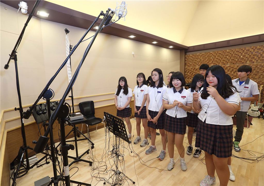 대림중학교 학생들이 교가를 녹음하고 있는 모습