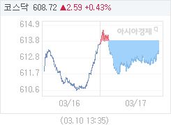 2017년 03월 17일 코스닥 지수는 0.62p (0.10%) 하락한 613.26로 마감했습니다.금일 (3시10분 기준) 코스닥 주요 상승 종목은 하나머스트3호스팩,하나머스트4호스팩,아이리버이며, 코스닥 주요 하락 종목은 씨그널엔터테인먼트그룹,사파이어테크놀로지,동일철강입니다.아경봇 기자 r2@asiae.co.kr<ⓒ세계를 보는 창 경제를 보는 눈, 아시아경제(www.asiae.co.kr) 무단전재 배포금지>