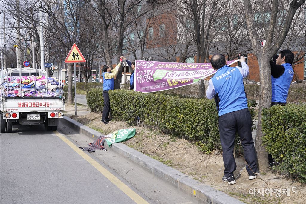 [아시아경제 노해섭 기자]광주 광산구는 지난 16일 도시 미관과 안전을 해치는 불법현수막을 대대적으로 정비했다. 월곡동과 운남동 일대에서 진행한 정비 작업에는 광주시, 광산경찰서, 옥외광고물협회 등도 함께 했다. 이날 광산구 등이 철거한 불법현수막 등 광고물은 총 200여 점에 달했다.지정 장소 외에 불법으로 내건 현수막은 도시 미관, 교통사고 우려, 보행자 안전 저해 등을 이유로 많은 비판을 받고 있다.광산구 관계자는 “광고주가 광고 효과도 누리고 도시미관, 안전과 조화를 이루는 방법을 찾고 있다”며 “시민, 전문가와 함께 적절한 방안을 찾아 불법현수막 없는 도시 만들기에 힘쓰겠다”고 밝혔다. 노해섭 기자 nogary@<ⓒ세계를 보는 창 경제를 보는 눈, 아시아경제(www.asiae.co.kr) 무단전재 배포금지>