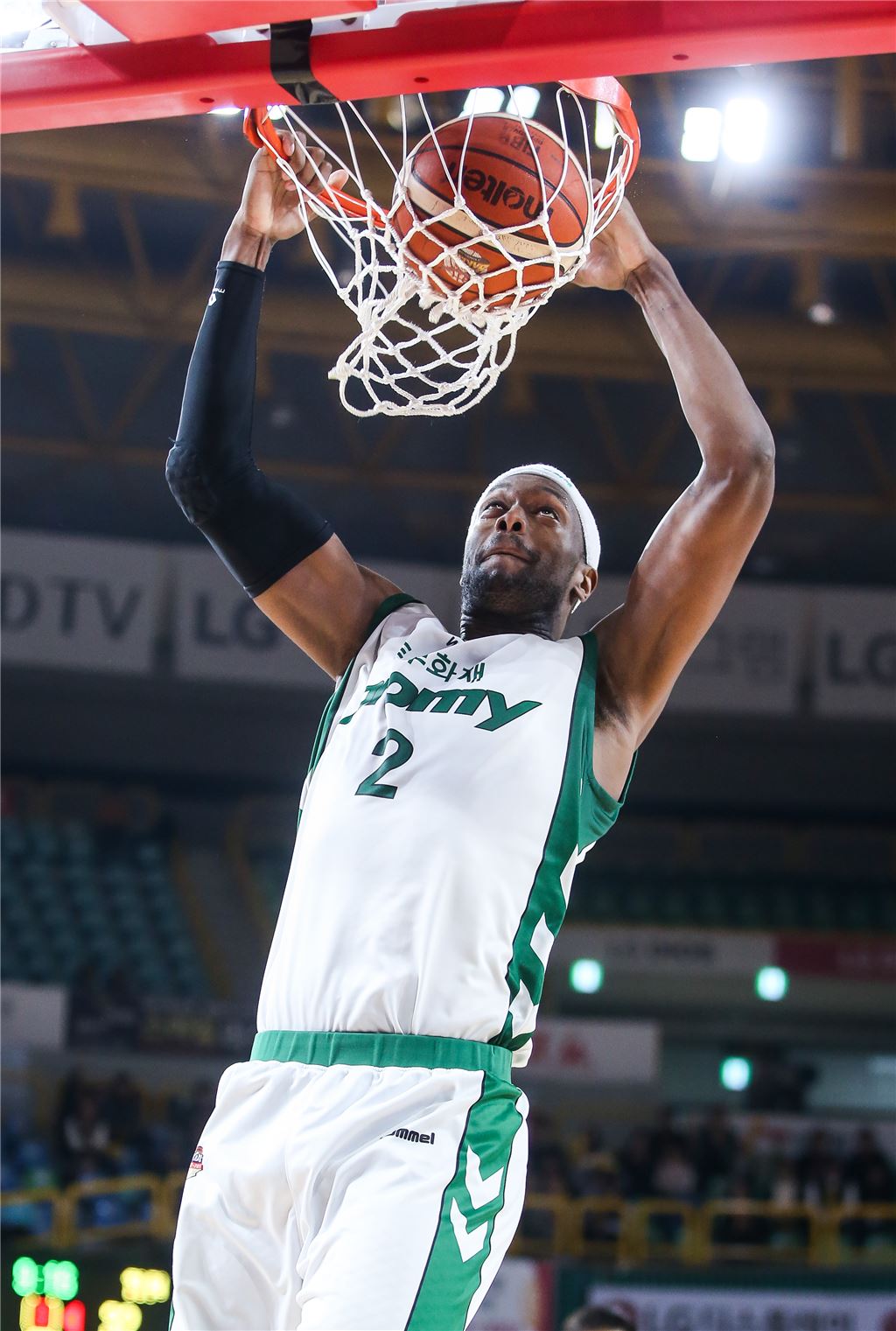 로드 벤슨이 20점 17리바운드로 더블더블을 작성했고 허웅이 3점슛 두 개 포함 11득점에 4리바운드 5도움을 기록했다. 웬델 맥키네스도 16점 6리바운드 4도움으로 활약했다. 김주성은 11점을 넣어 개인 통산 1만 득점에 불과 3점만을 남겨뒀다. 김주성은 26일 정규리그 최종전에서 서장훈(1만3231점), 추승균(1만19점)에 이어 프로농구 역대 세 번째로 1만득점 돌파를 달성할 것으로 예상된다. LG에서는 제임스 메이스가 12점 14리바운드, 김종규가 16점 5리바운드를 기록했다. 동부는 1쿼터 초반 4-10으로 밀리며 시작했으나 중반 이후 허웅과 김주성의 페인트존 득점이 이어지고 맥키네스의 3점 플레이가 나오면서 경기를 뒤집었다. LG는 빠른 공수 전환으로 김시래, 김종규, 메이스가 잇달아 득점에 성공하면서 초반 흐름을 가져갔으나 기세를 이어가지 못 했다. 동부가 1쿼터를 18-14로 앞섰다. 2쿼터 초반 벤슨이 연속 득점을 올렸다. LG는 김종규의 야투로 추격을 계속 했다. LG가 안정환의 3점슛으로 기세를 올리자 동부는 박지현의 3점슛으로 응수했다. 동부는 2쿼터 5분을 넘기면서 33-23, 점수차를 두 자리 수로 벌렸다. 2쿼터 종료 직전에는 맥키네스의 연속 자유투로 점수차를 확대했다. 동부는 전반을 45-32로 앞섰다.허웅 [사진= KBL 제공]