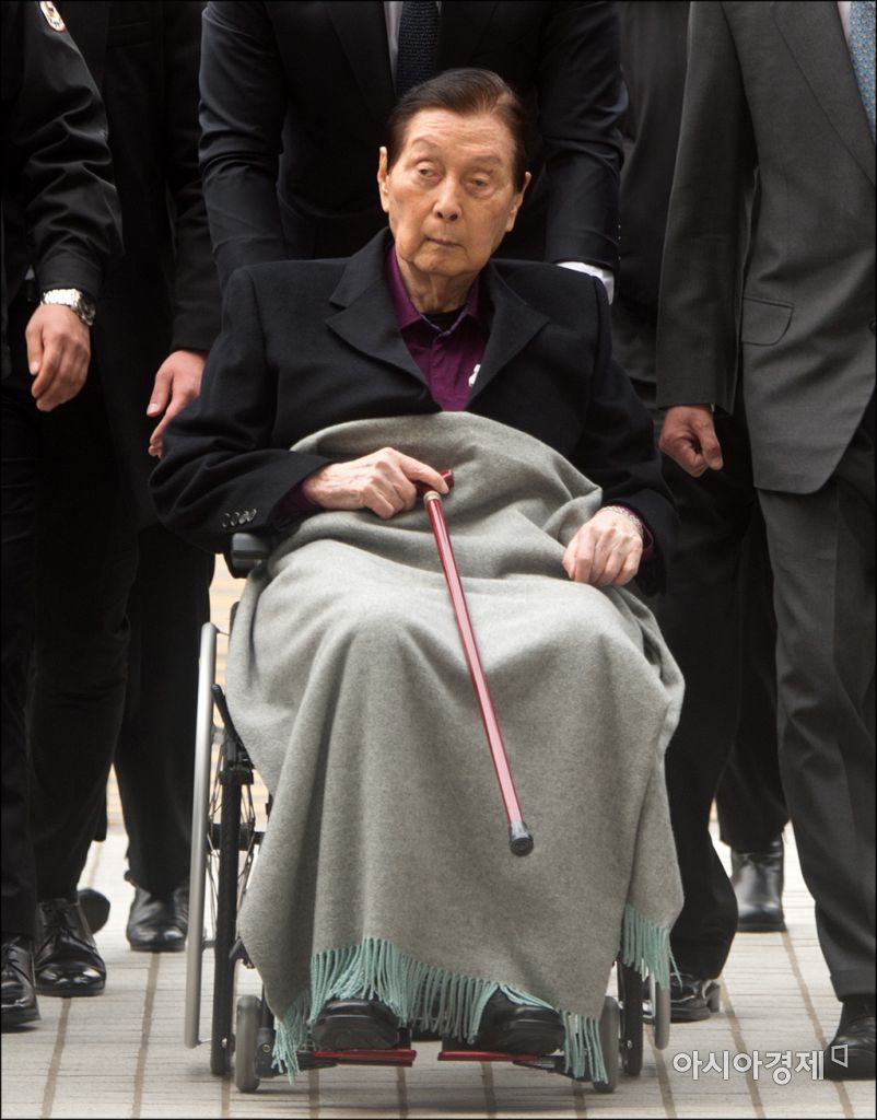 신격호 롯데그룹 총괄회장이 20일 서울 서초동 법원종합청사에 들어서고 있다.