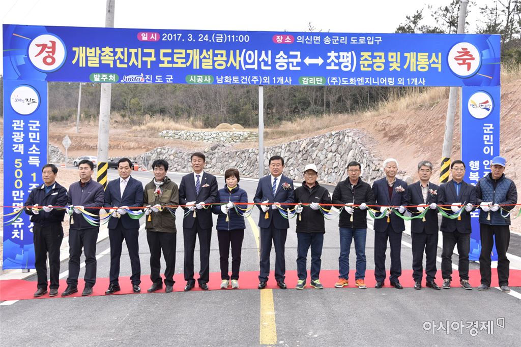 [아시아경제 노해섭 기자]진도군의 현안 사업 중 하나인 의신면 송군-초평간 도로가 개통됐다. 진도군은 “지난 2013년부터 69억원을 투입, 의신면 송군-초평간 노선 1.47㎞에 대해 도로공사를 완료하고 지난 24일(금) 개통식을 개최했다”고 밝혔다. 개발촉진지구 도로 개설로 추진된 이 사업은 지난 2014년까지 총 345억원이 투입되어 총 4개 구간이 준공되었으며, 이번에 마지막 구간인 송군-초평간 도로가 이날 개통됐다. 이 도로 완공으로 다도해의 자연 경관을 조망할 수 있는 해안도로 체계가 추가로 연결되고 어민·관광객 교통편의 제공 및 해안지역 접근성이 개선돼 지역경제 활성화와 균형 발전에 큰 역할을 할 것으로 기대되고 있다. 특히 2019년 상반기 1단계 완공을 목표로 건설중인 총 1,007실 규모의 진도 대명해양리조트의 진입 도로 역할도 하게 된다. 이동진 진도군수는 “지역주민들의 적극적인 협조와 관심으로 개발촉진지구 도로 개설공사가 완공됐다”며 “오늘 개통된 이 도로가 진도 대명해양리조트 완공시 돈을 가장 잘 버는 길이 될 것으로 기대된다”고 말했다.노해섭 기자 nogary@<ⓒ세계를 보는 창 경제를 보는 눈, 아시아경제(www.asiae.co.kr) 무단전재 배포금지>