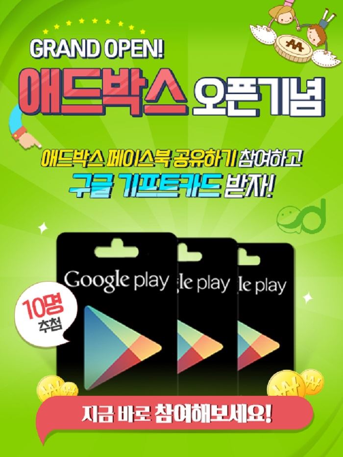참여 방법은 간단하다. ‘애드박스’ 공식 페이스북(https://goo.gl/hxZYhm)에 게재된 이벤트 게시물을 공유하고 응원 댓글을 남기면 된다. 댓글에 자신의 ‘애드박스’ 닉네임을 함께 게재해야 참여가 인정되며, 추첨을 통해 선정된 10명에게 ‘구글 기프트카드 1만 5천 원’을 선물로 증정한다.헝그리앱 관계자는 “출시 약 일주일 째에 접어든 ’애드박스’는 많은 분들의 관심 덕분에 구글플레이 평점 4.6을 기록하며 순항 중이다“라며, “앞으로도 다양한 이벤트로 유저 여러분께 혜택을 드릴 수 있도록 노력하겠다”라고 전했다.‘애드박스’는 바이럴 마케팅을 진행하는 주체(인플루언서)가 효과만큼의 재화를 획득할 수 있도록 개발된 어플로 유저가 직접 게임의 홍보를 담당, 홍보를 통해 다운로드 등의 행동이 이루어졌을 경우 일정 금액의 재화를 취득하게 되는 구조다. 게임도 즐기며 돈도 벌 수 있는 ‘꿀알바’ 어플이라는 입소문을 타며 가입자가 최근 들어 급증했다.현재 ‘다이브’, ‘신무협’, ‘팀가디언’, ‘삼국야망2 온라인’, ‘창공의수호자’ 등 인기 모바일게임의 캠페인을 진행 중이며, 출시 후 일정 기간 동안은 마진율을 제로에 가깝게 책정하여 유저의 수익을 높이면서 양질의 인플루언서를 대규모로 확보하는데 주력할 계획이다.디지털뉴스본부 온라인이슈팀 issue@asiae.co.kr<ⓒ세계를 보는 창 경제를 보는 눈, 아시아경제(www.asiae.co.kr) 무단전재 배포금지>