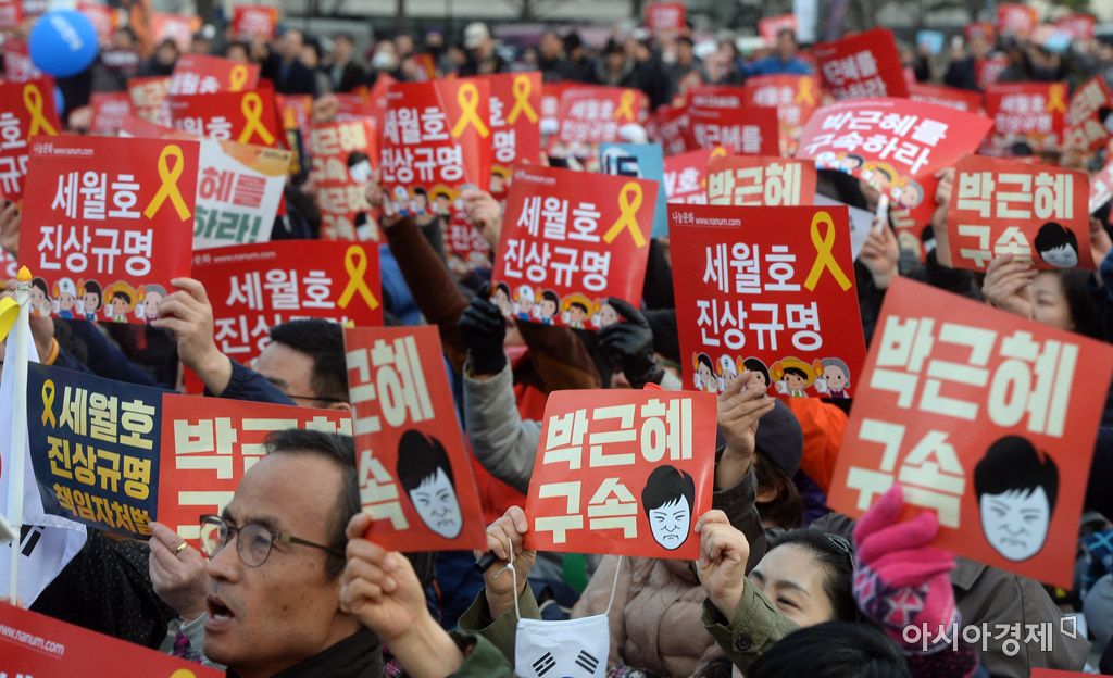[아시아경제 문호남 수습기자] 박근혜 전 대통령에 대한 구속영장 청구 여부가 임박한 25일 서울 종로구 광화문 광장에서 열린 21차 촛불집회에서 시민들이 박 전 대통령의 구속과 세월호 진상규명을 촉구하는 피켓을 든 채 구호를 외치고 있다.문호남 수습기자 munonam@asiae.co.kr<ⓒ세계를 보는 창 경제를 보는 눈, 아시아경제(www.asiae.co.kr) 무단전재 배포금지>
