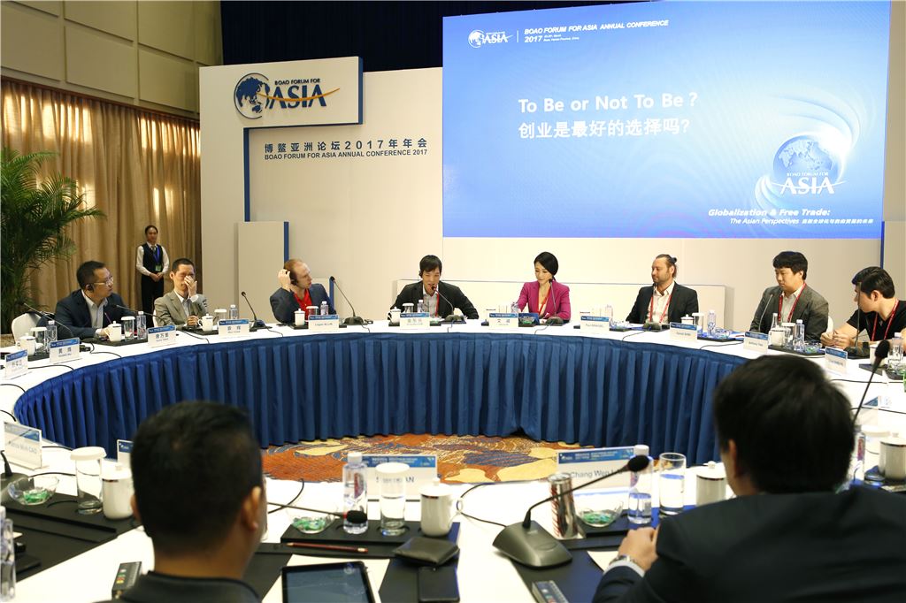 ▲지난 24일 중국 하이난성 충하이시의 보아오포럼에서 열린 아시아 스타트업 라운드테이블에서 한화그룹 김동원상무(사진 중앙)가 패널로 참석해 아시아 스타트업 생태계의 발전방향에 대해 토론하고 있다.