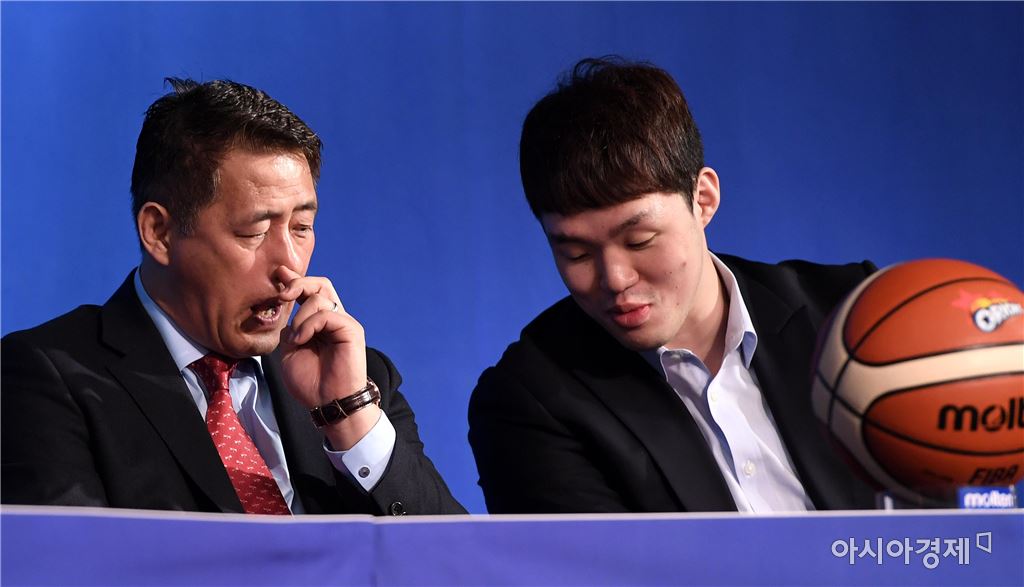 [아시아경제 김현민 기자] 2016-2017 프로농구 플레이오프 미디어데이가 28일 서울 서초구 더케이호텔에서 열렸다. 오리온 추일승 감독과 이승현이 대화하고 있다.김현민 기자 kimhyun81@asiae.co.kr<ⓒ세계를 보는 창 경제를 보는 눈, 아시아경제(www.asiae.co.kr) 무단전재 배포금지>