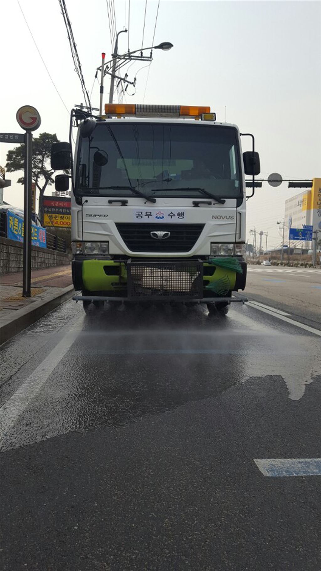 성남시가 살수차를 이용해 도로청소를 하고 있다.