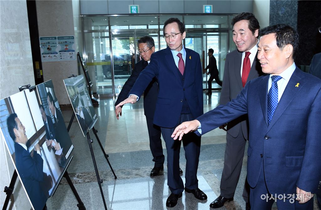[아시아경제 노해섭 기자] 윤장현 광주광역시장, 이낙연 전남도지사, 송하진 전북도지사가 29일 오전 나주 중흥골드스파리조트에서 열린 제11회 호남권정책협의회에 참석해 전시된 사진을 둘러보고 있다.