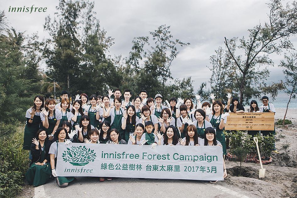 이니스프리 숲조성 캠페인 참가자들이 기념촬영을 하고 있다.
