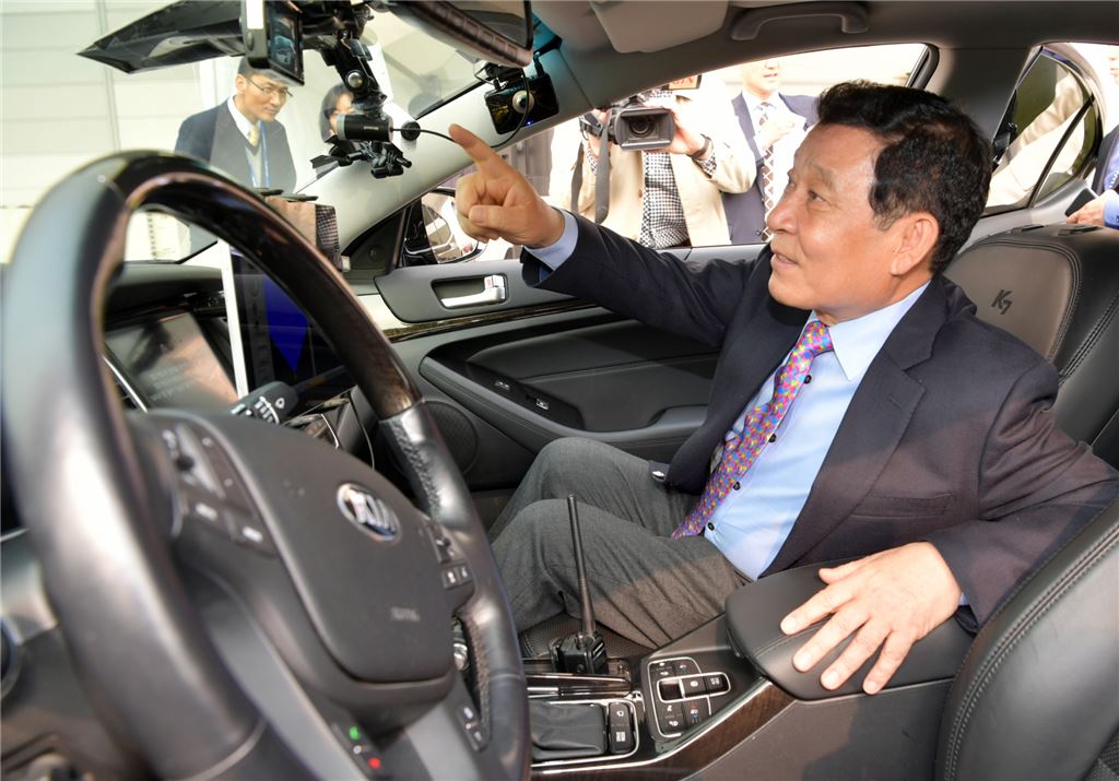 [아시아경제 노해섭 기자]윤장현 광주광역시장이 31일 오전 경기도 고양시 킨텍스 제2전시장에서 열린 '2017 서울모터쇼' 개막식에 참석해 자율주행차를 시승 하고 있다.