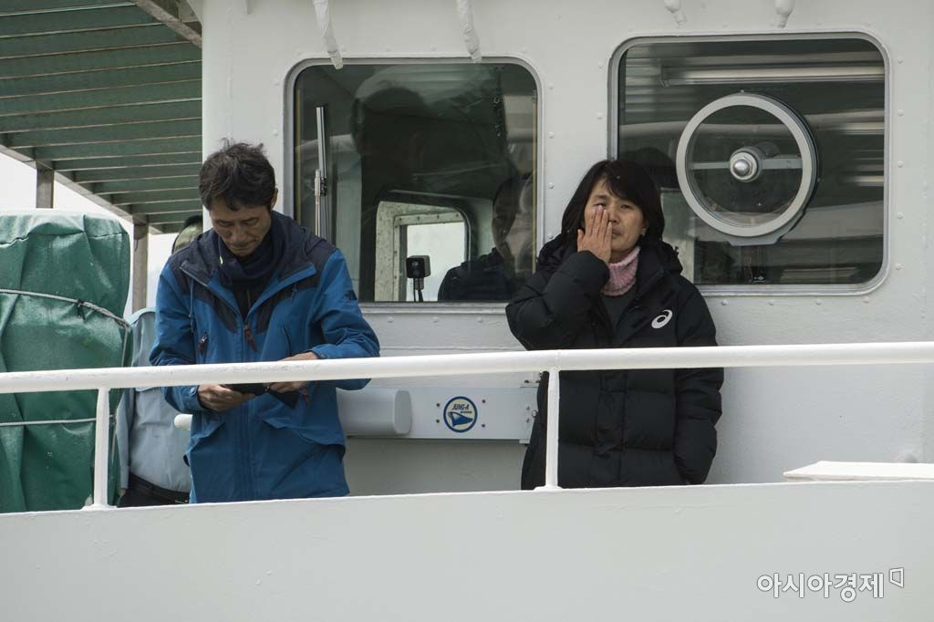 [아시아경제 백소아 기자] 31일 오전 참사 1081일만에 세월호 선체가 사고해역을 떠나 목포신항으로 도착했다. 미수습자 가족 허다윤양 어머니 박은미씨가 해수부 선박에서 정박중인 세월호 선체를 지켜보며 눈물을 흘리고있다.백소아 기자 sharp2046@asiae.co.kr<ⓒ세계를 보는 창 경제를 보는 눈, 아시아경제(www.asiae.co.kr) 무단전재 배포금지>