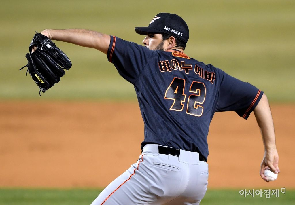 [아시아경제 김현민 기자]프로야구 한화 이글스와 두산 베어스의 2017 KBO리그 개막경기가 31일 잠실구장에서 열렸다. 한화 선발투수 비야누에바가 역투하고 있다. 김현민 기자 kimhyun81@asiae.co.kr<ⓒ세계를 보는 창 경제를 보는 눈, 아시아경제(www.asiae.co.kr) 무단전재 배포금지>