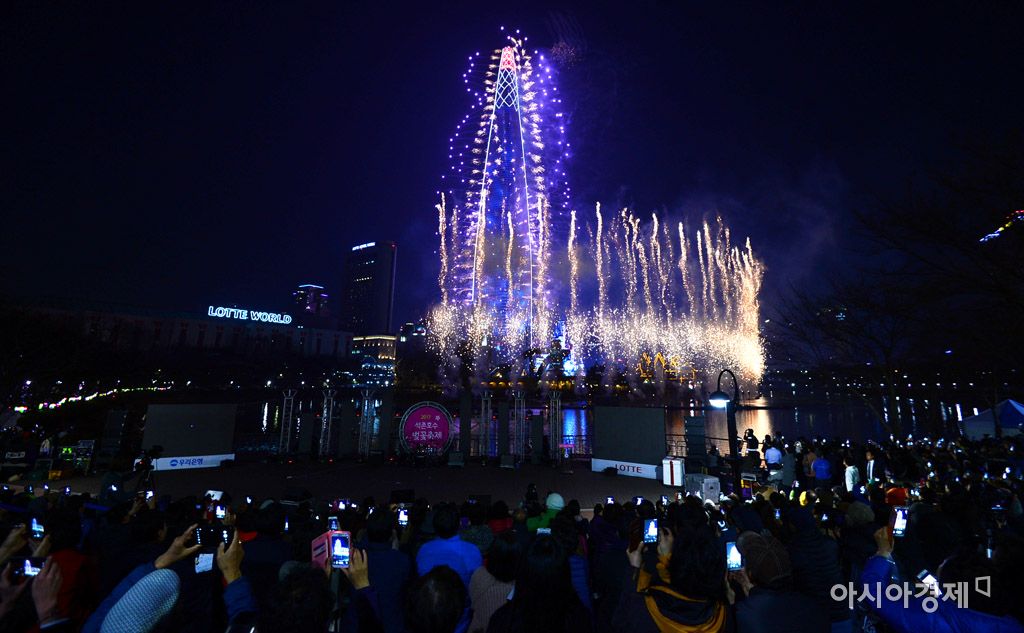 [포토]높이 555m, 40억원 '불꽃쇼'