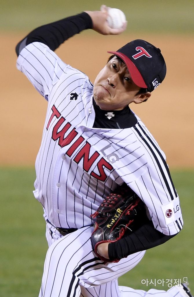 [아시아경제 김현민 기자]프로야구 삼성 라이온즈와 LG 트윈스의 2017 KBO리그 경기가 4일 잠실구장에서 열렸다. 7회초 LG 구원투수 김지용이 역투하고 있다.김현민 기자 kimhyun81@asiae.co.kr<ⓒ세계를 보는 창 경제를 보는 눈, 아시아경제(www.asiae.co.kr) 무단전재 배포금지>