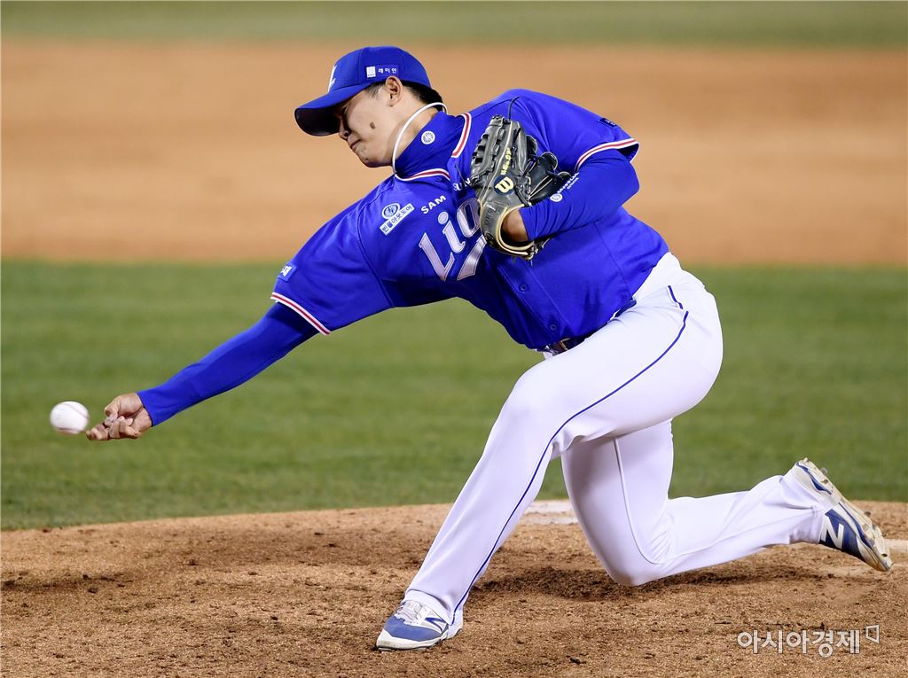 [아시아경제 김현민 기자]프로야구 삼성 라이온즈와 LG 트윈스의 2017 KBO리그 경기가 4일 잠실구장에서 열렸다. 삼성 구원투수 김대우가 7회 말 역투하고 있다.김현민 기자 kimhyun81@asiae.co.kr<ⓒ세계를 보는 창 경제를 보는 눈, 아시아경제(www.asiae.co.kr) 무단전재 배포금지>