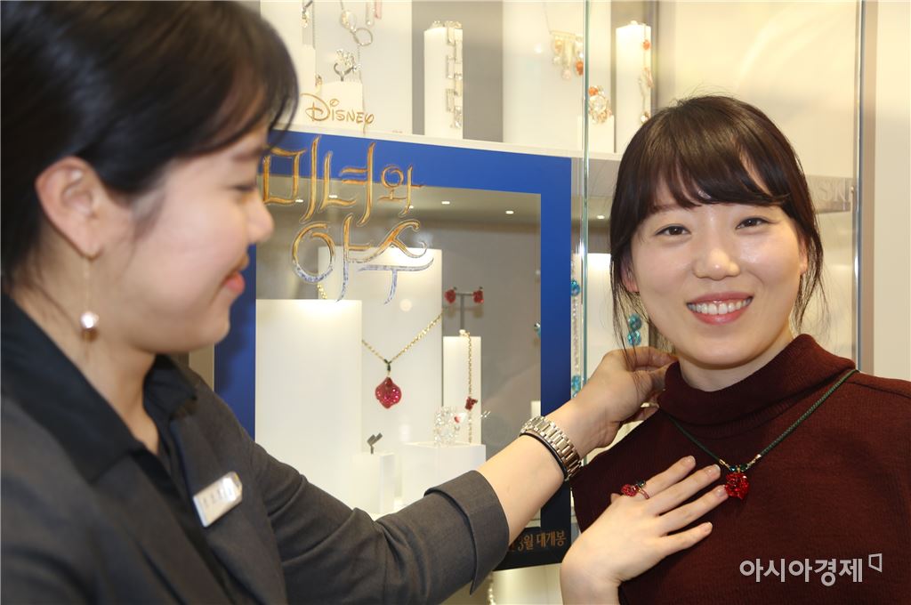 [아시아경제 노해섭 기자](주)광주신세계(대표이사 임훈) 2층 쥬얼리 매장 스와로브스키에서 미녀와야수 영화에 맞춰 출시한 "미녀와야수 리미티드 에디션"이 최근 연인들 사이로 인기리에 있다.동화속 영화속 이야기의 컨셉으로 귀걸이, 초커, 반지, 목걸이, 핀 등 다양한 상품이 있으며, 하나하나 수공으로 세팅해 돋보이는 디테일을 자랑한다.디자인은 대표적으로 장미모양을 모티브로한 레드와 그린 스타일로 되어있다. 가격은 귀걸이 46만원, 목걸이 33만원, 반지 46만원으로 한정판 상품인만큼 비교적 고가이다.노해섭 기자 nogary@<ⓒ세계를 보는 창 경제를 보는 눈, 아시아경제(www.asiae.co.kr) 무단전재 배포금지>