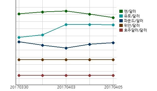 4월 5일 12시 현재 국제시장환율은 달러/유로 환율은 전일대비 0.02%(0.0003달러) 오른 1유로에 1.0658달러이고, 달러/영국 파운드 환율은 전일대비 0.24%(0.0031달러) 내린 1파운드에 1.2444달러이고, 중국 위안/달러 환율은 전일대비 0.00%(0.0005위안) 오른 1달러에 6.8879위안이고, 일본 엔/달러 환율은 전일대비 0.38%(0.4300엔) 내린 1달러에 110.5500엔이다아경봇 기자 r2@asiae.co.kr<ⓒ세계를 보는 창 경제를 보는 눈, 아시아경제(www.asiae.co.kr) 무단전재 배포금지>
