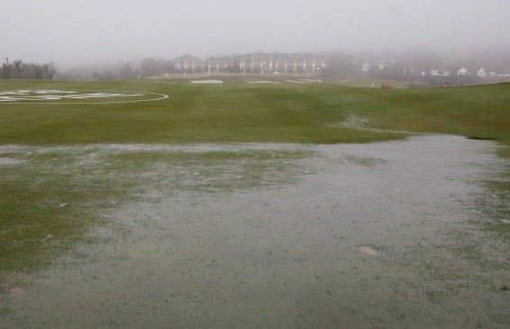 롯데여자오픈 1라운드가 열릴 예정이던 제주 롯데스카이힐골프장의 페어웨이가 물에 잠겨 있는 모습. 사진=KLPGA
