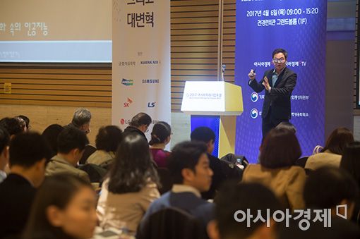 최광희 영화평론가가 6일 '2017 아시아미래기업포럼'에서 4차 산업혁명과 영화를 주제로 강연하고 있다.