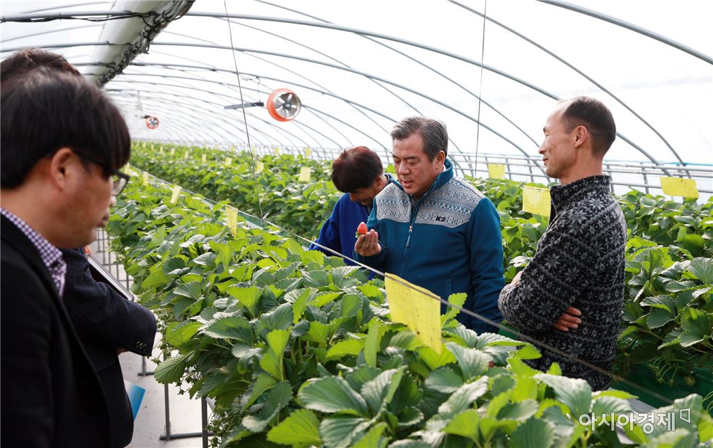 "원예시설 현대화를 통한 농가소득 증대" [아시아경제 노해섭 기자]곡성군(군수 유근기)은 지난 5일 ‘전남 농업을 빛낸 사람들’로 선정된 곡성멜론(주) 이선재 대표의 하이베드 양액재배 딸기 하우스를 방문해 애로사항을 청취하는 등 현장의 다양한 의견을 듣는 시간을 가졌다. 하이베드 양액재배 시설은 농업인의 신체에 맞추어 지상 1m에서 1.3m 높이에 베드를 설치하여 농작물을 수확하는 방식으로, 기존 토경재배에 비해 연작장해 감소, 노동력 절감, 수량 증대, 품질 향상 등 다양한 이점이 있어 농업인들로부터 큰 호응을 얻고 있다. 이선재 대표는 2016년도에 딸기 하이베드 양액재배시설을 도입하여, 3,180㎡의 시설하우스에서 지역 특성에 맞는 죽향, 설향 등 수출 유망 품종을 선발하여 지난해 12월부터 올해 5월까지 수확할 예정이다. 또한 젊은 농업인들과 함께 고설 딸기 연구회를 만들어 재배방법 공유 및 신기술 도입 등 곡성 딸기의 품질 향상을 위해 노력하고 있다. 유근기 군수는 “FTA 등으로 인해 농업이 어려움에 직면해 있지만, 농업인이 적극적인 시설개선 노력으로 수출기반을 마련하고 소득향상에 기여하기를 기대한다”며 “앞으로도 딸기 재배기술 향상과 농가 소득을 위하여 많은 농가에 양액재배시설이 지원될 수 있도록 노력하겠다”고 밝혔다.노해섭 기자 nogary@<ⓒ세계를 보는 창 경제를 보는 눈, 아시아경제(www.asiae.co.kr) 무단전재 배포금지>