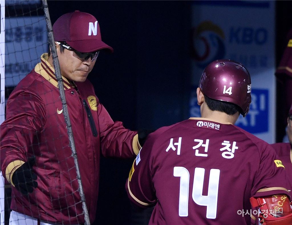 [아시아경제 김현민 기자]프로야구 넥센 히어로즈와 두산 베어스의 2017 KBO리그 경기가 7일 잠실구장에서 열렸다. 4회초 넥센 선두타자 서건창이 두산 선발 니퍼트를 상대로 동점 솔로 홈런을 치고 장정석 감독과 하이파이브하고 있다. 김현민 기자 kimhyun81@asiae.co.kr<ⓒ세계를 보는 창 경제를 보는 눈, 아시아경제(www.asiae.co.kr) 무단전재 배포금지>