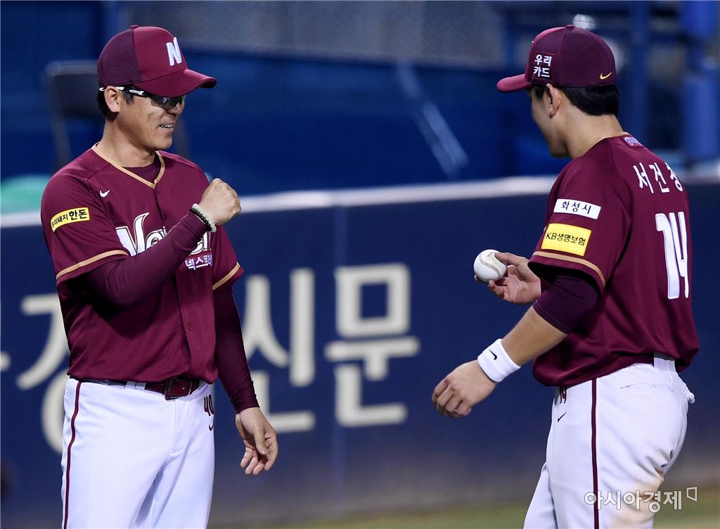 [아시아경제 김현민 기자]프로야구 넥센 히어로즈와 두산 베어스의 2017 KBO리그 경기가 7일 잠실구장에서 열렸다. 넥센 장정석 감독이 7-3 승리를 확정한 뒤 서건창과 기뻐하고 있다.김현민 기자 kimhyun81@asiae.co.kr<ⓒ세계를 보는 창 경제를 보는 눈, 아시아경제(www.asiae.co.kr) 무단전재 배포금지>