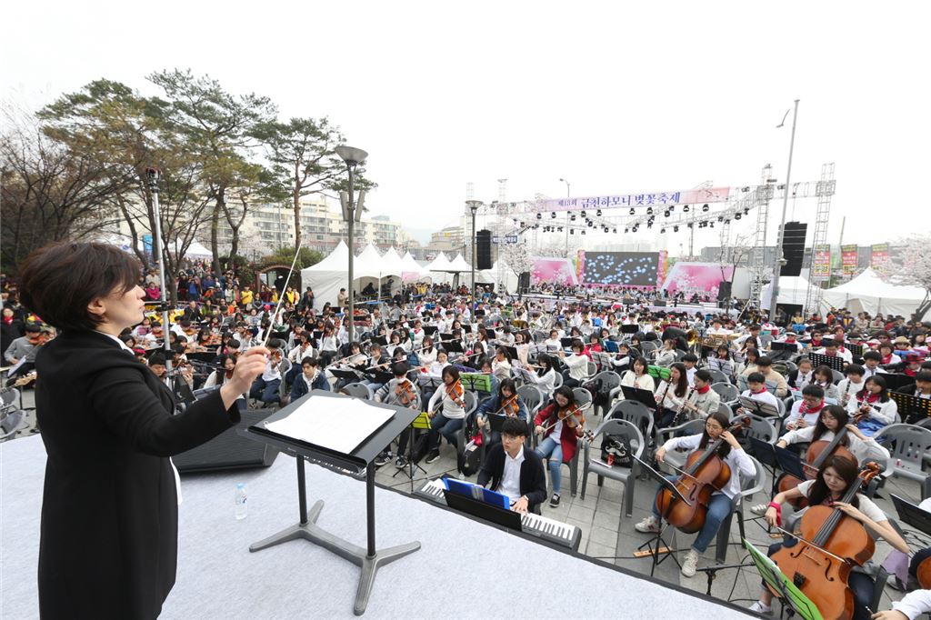 [아시아경제 박종일 기자] 8일 오후 4시 금천구청 광장에서는 주민 800여명이 참여하는 금천하모니오케스트라 주민대합주가 펼쳐졌다.금천하모니오케스트라는 ‘제13회 금천하모니 벚꽃축제’의 메인 행사로 2011년부터 매년 열리고 있다.연주곡은 ‘나팔수의 휴일’, ‘산체스의 아이들’, ‘걱정말아요 그대’ 등 9곡으로 바이올린, 비올라, 첼로, 오카리나 등 전자악기와 타악기를 제외한 악기로 연주되며 특히 멜로디 악기만의 연주를 부각시키기 위한 곡을 마련했다. 금천하모니 벚꽃축제는 9일까지 계속되며, 주민들의 참여하는 ‘금천스타킹’, ‘틴틴 페스티벌’, ‘로망 콘서트’등 다양한 공연과 벚꽃장터, 먹거리부스, 체험마당 등 남녀노소 누구나 즐길 수 있는 풍성한 행사가 펼쳐질 예정이다.박종일 기자 dream@asiae.co.kr<ⓒ세계를 보는 창 경제를 보는 눈, 아시아경제(www.asiae.co.kr) 무단전재 배포금지>