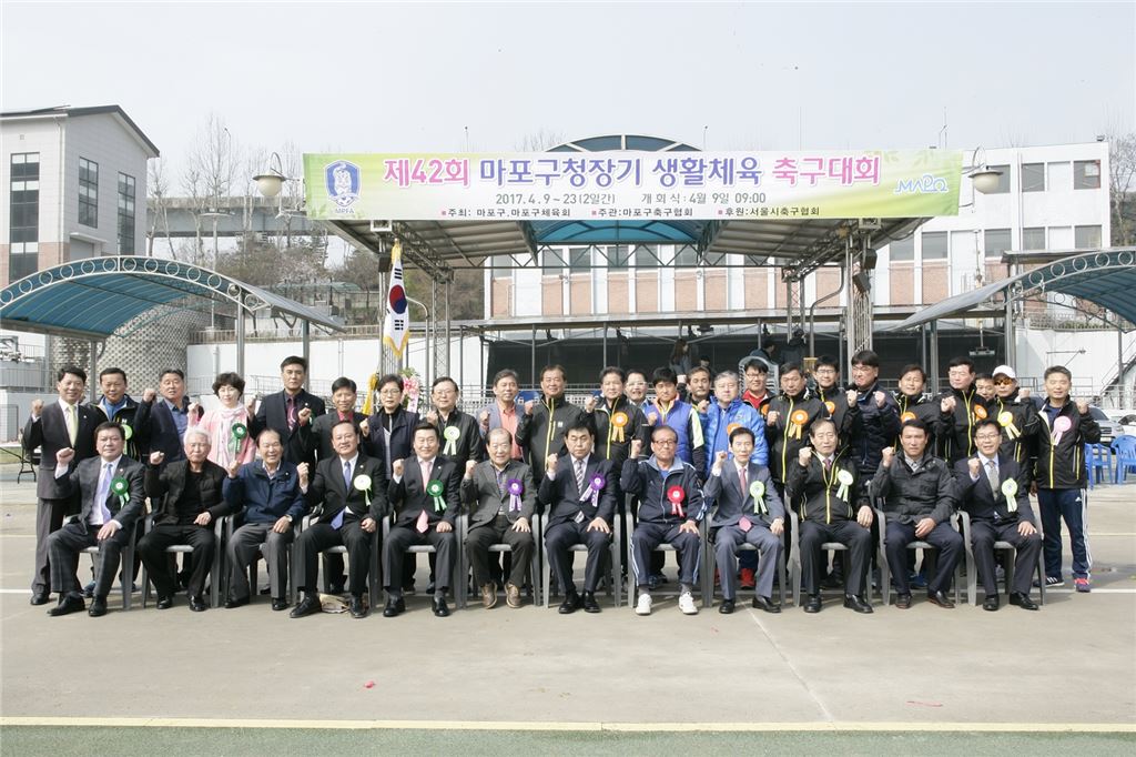 [아시아경제 박종일 기자] 박홍섭 마포구청장이 9일 오후 열린 '제42회 마포구청장기 생활체육 축구대회'에 참석해 유호렬 마포구의회 부회장, 김희태 마포구생활체육회장 , 김인수 마포구축구협회 회장 등, 마포구체육회 관계자들과 함께 기념사진을 찍었다. 축구 동호인들의 건강증진과 화합을 도모하고 생활체육 활성화를 위해 마련된 이번 행사는 지역 18개 클럽 48팀 1200명이 참여한다.대회는 망원유수지축구장 외 5개소에서 진행된다 박종일 기자 dream@asiae.co.kr<ⓒ세계를 보는 창 경제를 보는 눈, 아시아경제(www.asiae.co.kr) 무단전재 배포금지>