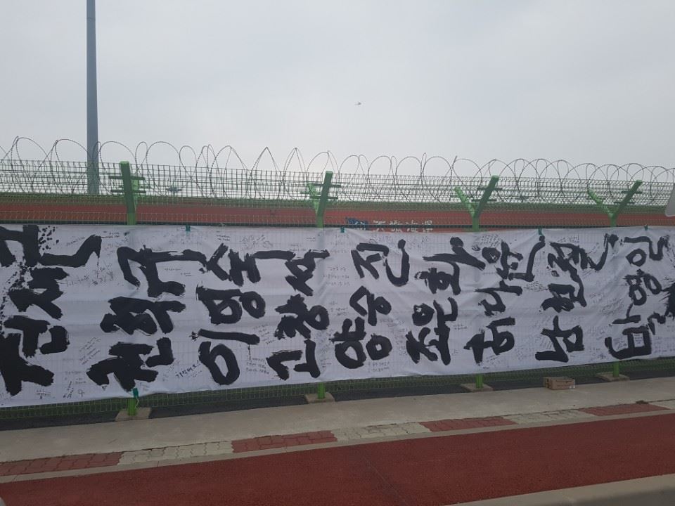 장흥군농민회, 목포시한의사회 등 지역의 단체 뿐 아니라 4.16안산시민연대 소속 단체들인 안산노동대학자치회, 함께크는여성울림, 안산YWCA, 안산교육희망네트워크 등도 현수막을 걸었다.철조망 끝 부분에는 약 30m에 이르는 대형걸개가 걸려 있다. 미수습자 9명의 이름과 함께 하루 빨리 가족의 품으로 돌아오길 간절히 바라는 시민들의 메시지가 빼곡히 쓰여 있다.목포시는 지난달 31일부터 의료, 소방, 차량안내 봉사자 등 자원봉사대를 꾸려 운영하고 있다. 주말에는 하루 평균 100여명의 자원봉사자가 동원되고, 평일에는 그보다는 적게 운영된다. 목포시 관계자는 “조금이나마 세월호의 아픔을 치유하기 위해 노력하고 있다”고 말했다.목포=김민영 기자 mykim@asiae.co.kr<ⓒ세계를 보는 창 경제를 보는 눈, 아시아경제(www.asiae.co.kr) 무단전재 배포금지>