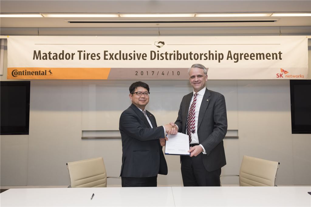 SK네트웍스의 종합차량관리 브랜드 '스피드메이트'가 지난 10일 유럽 최대 타이어 업체인 콘티넨탈 타이어와 아시아 최초로 마타도르 타이어 독점 공급 계약을 체결했다.