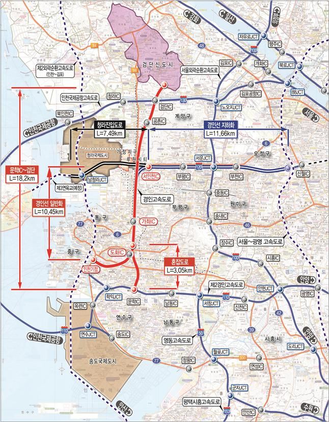 인천시, 2026년까지 3개 구간 단계적 추진…이학재 의원 '전체 구간 동시 착공하고, 문학IC~검단 지하고속화는 반대'