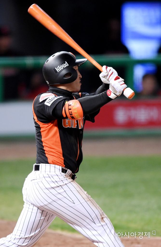 [인천=아시아경제 김현민 기자] 프로야구 롯데 자이언츠와 SK 와이번스의 2017 KBO리그 경기가 11일 인천 SK행복드림구장에서 열렸다. 6회초 2사 1,2루에서 롯데 손아섭이 추가 2타점 2루타를 치고 있다.