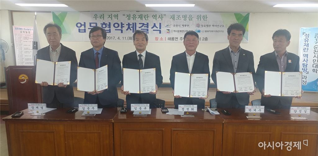 전남 순천시가 역사문화연구원 마루, 전남동부지역사회연구소, 정유재란 역사연구회를 비롯한 지역단체와 해룡면, 전라남도의회(정병회 의원), 순천시의회(박계수 의원)가 참여한 가운데 정유재란 역사 재조명을 위한 업무협약을 체결했다.