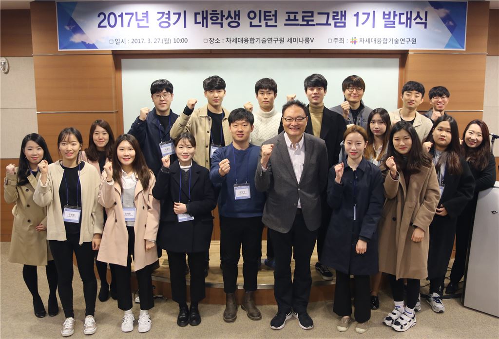 차세대융합기술연구원 대학생 인턴 프로그램에 참여한 대학생들이 화이팅을 외치고 있다.