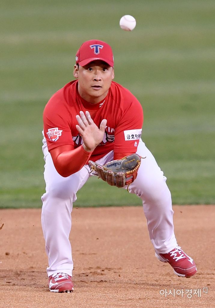 [아시아경제 김현민 기자]프로야구 KIA 타이거즈와 두산 베어스의 2017 KBO리그 경기가 12일 잠실구장에서 열렸다. 1회말 KIA 3루수 김주형이 두산 선두타자 민병헌의 타구를 수비하고 있다. 김현민 기자 kimhyun81@asiae.co.kr<ⓒ세계를 보는 창 경제를 보는 눈, 아시아경제(www.asiae.co.kr) 무단전재 배포금지>