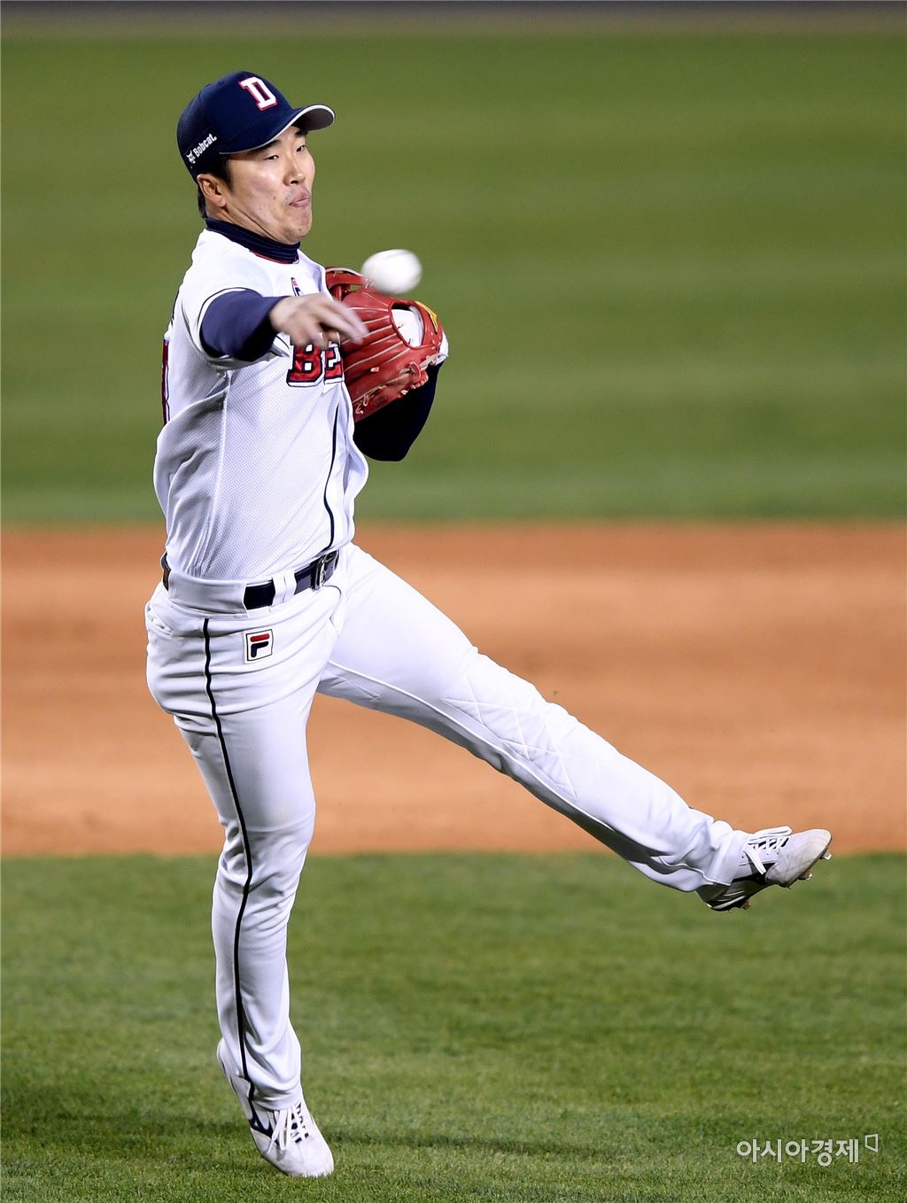 [아시아경제 김현민 기자]프로야구 KIA 타이거즈와 두산 베어스의 2017 KBO리그 경기가 12일 잠실구장에서 열렸다. 3회초 2사 1,2루에서 두산 3루수 혀경민이 KIA 김주찬의 땅볼 타구를 수비하다 송구 실책하고 있다.김현민 기자 kimhyun81@asiae.co.kr<ⓒ세계를 보는 창 경제를 보는 눈, 아시아경제(www.asiae.co.kr) 무단전재 배포금지>