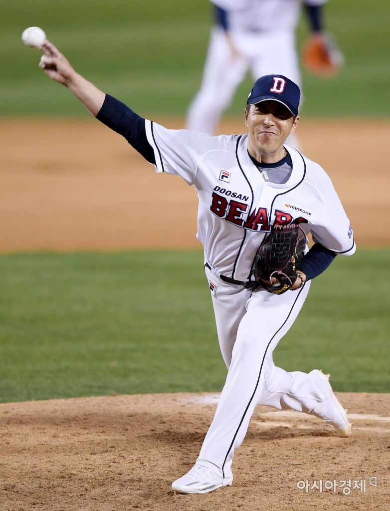 [아시아경제 김현민 기자]프로야구 KIA 타이거즈와 두산 베어스의 2017 KBO리그 경기가 12일 잠실구장에서 열렸다. 6회초 두산 구원투수 김승회가 역투하고 있다.김현민 기자 kimhyun81@asiae.co.kr<ⓒ세계를 보는 창 경제를 보는 눈, 아시아경제(www.asiae.co.kr) 무단전재 배포금지>