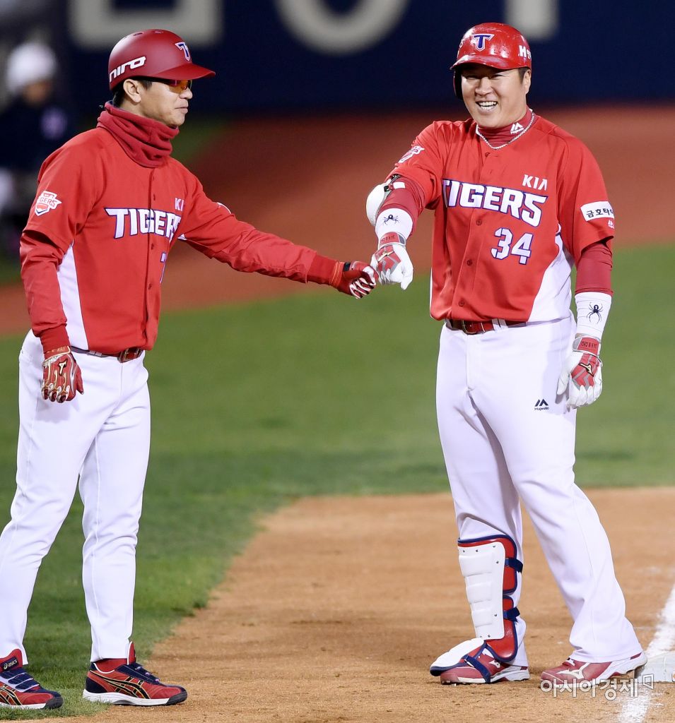 [아시아경제 김현민 기자]프로야구 KIA 타이거즈와 두산 베어스의 2017 KBO리그 경기가 12일 잠실구장에서 열렸다. 7회초 무사 1루에서 KIA 최형우가 추가 1타점 3루타를 치고 김종국 코치와 하이파이브하고 있다.김현민 기자 kimhyun81@asiae.co.kr<ⓒ세계를 보는 창 경제를 보는 눈, 아시아경제(www.asiae.co.kr) 무단전재 배포금지>