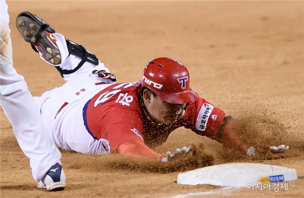 [아시아경제 김현민 기자]프로야구 KIA 타이거즈와 두산 베어스의 2017 KBO리그 경기가 12일 잠실구장에서 열렸다. 7회초 무사 3루에서 KIA 나지완이 추가 1타점 적시타를 치고 1루 베이스를 지나쳤다가 황급히 귀루하고 있다.김현민 기자 kimhyun81@asiae.co.kr<ⓒ세계를 보는 창 경제를 보는 눈, 아시아경제(www.asiae.co.kr) 무단전재 배포금지>