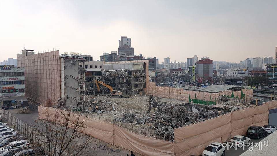 철거가 상당 부분 진행된 서울 청량리 롯데플라자 건물(사진=인터넷 커뮤니티)