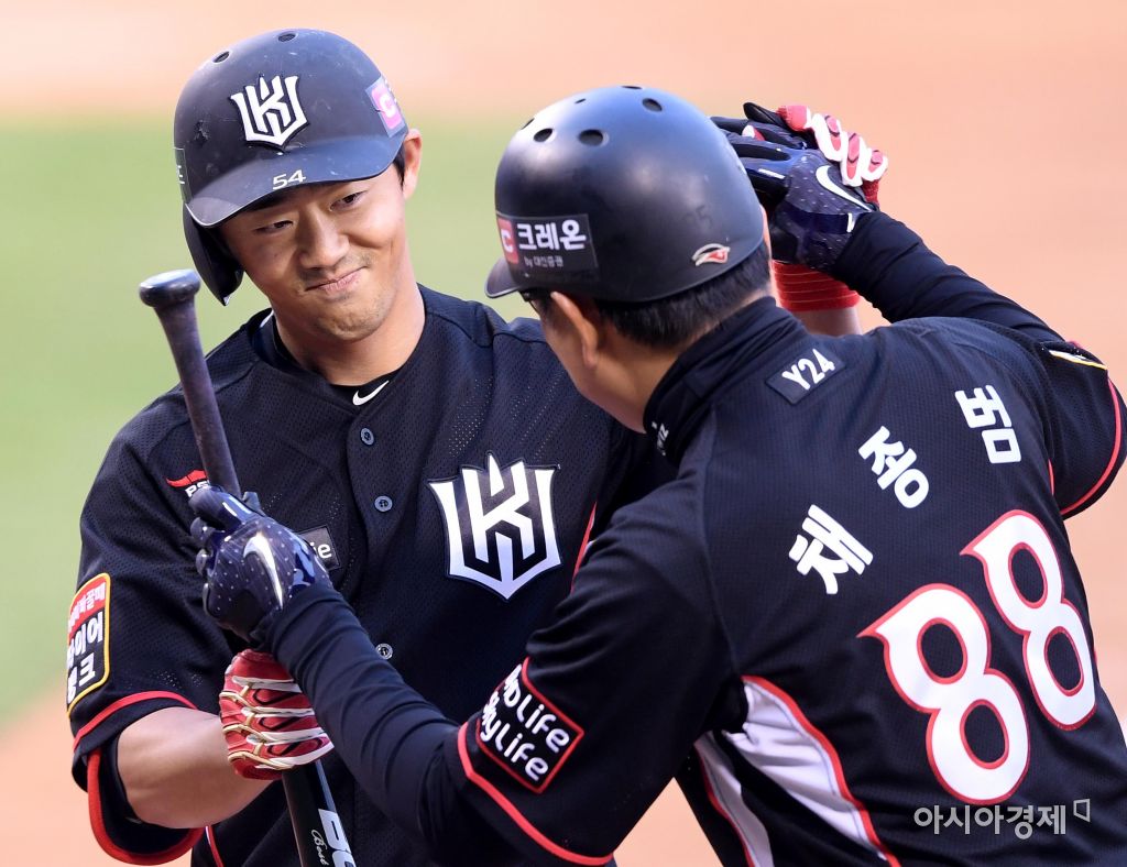 [아시아경제 김현민 기자]프로야구 kt 위즈와 LG 트윈스의 2017 KBO리그 경기가 14일 잠실구장에서 열렸다. 1회초 1사에서 kt 전민수가 LG 선발 류제국을 상대로 선제 솔로 홈런을 치고 채종범 코치와 기뻐하고 있다. 김현민 기자 kimhyun81@asiae.co.kr<ⓒ세계를 보는 창 경제를 보는 눈, 아시아경제(www.asiae.co.kr) 무단전재 배포금지>