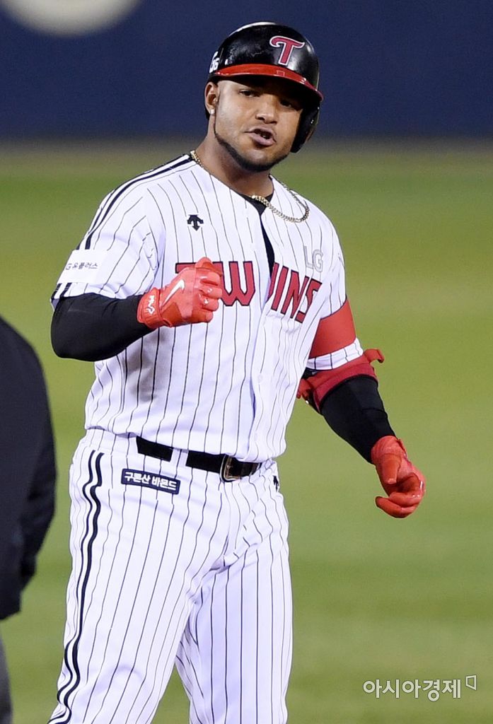 [아시아경제 김현민 기자]프로야구 kt 위즈와 LG 트윈스의 2017 KBO리그 경기가 14일 잠실구장에서 열렸다. 6회말 무사 만루에서 LG 히메네스가 3타점 싹쓸이 2루타를 치고 환호하고 있다. 김현민 기자 kimhyun81@asiae.co.kr<ⓒ세계를 보는 창 경제를 보는 눈, 아시아경제(www.asiae.co.kr) 무단전재 배포금지>