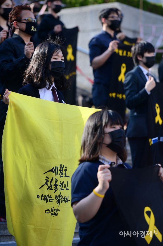 [아시아경제 문호남 수습기자] 세월호 참사 3주기를 하루 앞둔 15일 서울 종로구 세종문화회관 계단에서 세월호 추모 단체, 리멤버 0416 회원들이 3주기 퍼포먼스를 하고 있다.문호남 수습기자 munonam@asiae.co.kr<ⓒ세계를 보는 창 경제를 보는 눈, 아시아경제(www.asiae.co.kr) 무단전재 배포금지>