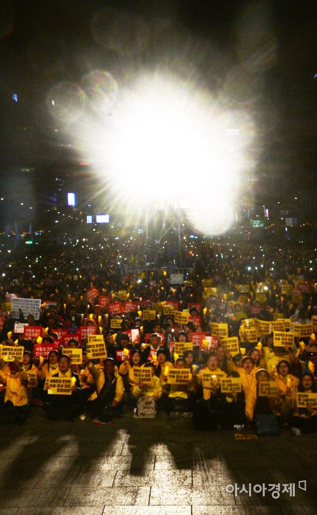[아시아경제 문호남 수습기자] 세월호 참사 3주기를 하루 앞둔 15일 서울 종로구 광화문 광장에서 열린 22차 촛불집회에서 시민들이 세월호 참사 추모 및 진상규명을 촉구하며 구호를 외치고 있다.문호남 수습기자 munonam@asiae.co.kr<ⓒ세계를 보는 창 경제를 보는 눈, 아시아경제(www.asiae.co.kr) 무단전재 배포금지>