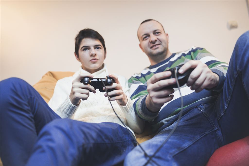 아빠와 아들이 함께 게임을 즐기는 흐뭇한 장면. 현실에선 보기 드물다. 이미지 = 게티이미지뱅크