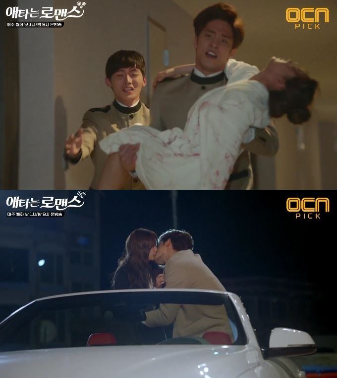 ‘애타는 로맨스’가 파격적인 스토리 전개로 시청자들의 관심을 받았다. 17일 OCN ‘애타는 로맨스’가 첫 방송됐다. 이날 방송에서는 재벌 2세 차진욱(성훈 분)과 이유미(송지은 분)의 첫 만남부터 첫 키스를 하기까지의 과정이 그려지며 두 사람의 관계가 빠르게 전개됐다. 진욱과 유미는 같은 버스에서 만났다. 진욱은 스캔들을 냈다는 이유로 회사 소유의 강원도에 있는 리조트로 쫓겨났다. 유미는 엄마의 두번째 결혼식에 참석하기 위해 강원도로 향했다. 유미는 이날 행사에서 케이크를 옮기던 진욱과 부딪혔다. 진욱은 직원의 신분으로 손님인 유미에게 사과를 하러 찾아갔다. 이후에도 둘의 인연은 계속됐다. 진욱은 유미의 방에 차키를 두고 왔고, 다시 방을 찾았을 땐 욕실에 미끄러져 쓰러진 유미를 발견했다. 진욱은 유미를 안고 뛰쳐나왔고 부끄러운 유미는 기절한 척했다. 유미는 점점 자상한 진욱에게 빠져들었고, 진욱 역시 유미에게 애틋함을 느끼게 됐다. 두 사람은 해변가에서 와인을 나눠 마시며 서로의 아픔과 과거사를 공유했다. 진욱은 울고 있는 유미에게 “우는 여자가 예뻐 보이는 것도 처음이다”라고 고백하며 차 안에서 키스해 서로의 마음을 확인했다.디지털뉴스본부 김윤주 기자 joo0416@asiae.co.kr<ⓒ세계를 보는 창 경제를 보는 눈, 아시아경제(www.asiae.co.kr) 무단전재 배포금지>