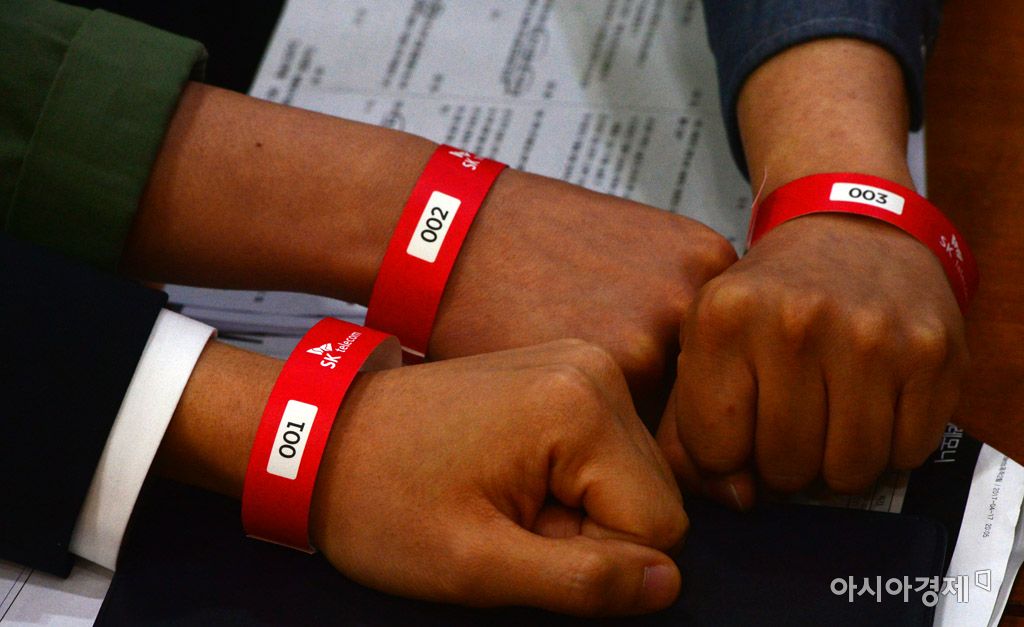 [아시아경제 문호남 수습기자] 삼성전자의 스마트폰 갤럭시S8, S8+의 사전 개통이 시작된 18일 서울 종로구 SK텔레콤 종각T월드에서 1호 개통을 위해 5박 6일 노숙을 한 김영범씨를 비롯한 시민들이 손을 한 데 모아 갤럭시 S8의 개통을 기다리고 있다. 문호남 수습기자 munonam@asiae.co.kr<ⓒ세계를 보는 창 경제를 보는 눈, 아시아경제(www.asiae.co.kr) 무단전재 배포금지>