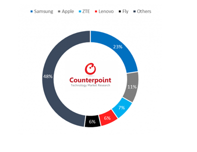 지난해 러시아 스마트폰 시장 제조사별 점유율(사진=카운터포인트)