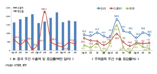 2017년 대중국 주간 수출액 및 품목별 증감률(사진=IITP)